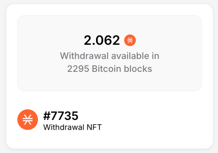 相反，你将收到一个提取 NFT，允许你领取 UI 中显示的 STX 数量。重要提示：请勿转移、销毁或出售该 NFT，否则你将无法领取 STX 代币。